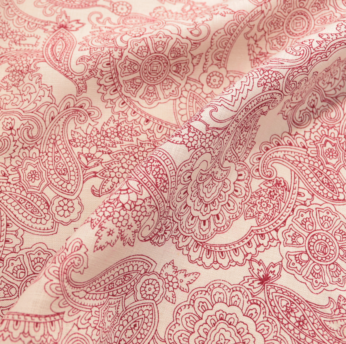 beige reines Leinen mit rotem Paisley Muster Bedruckt