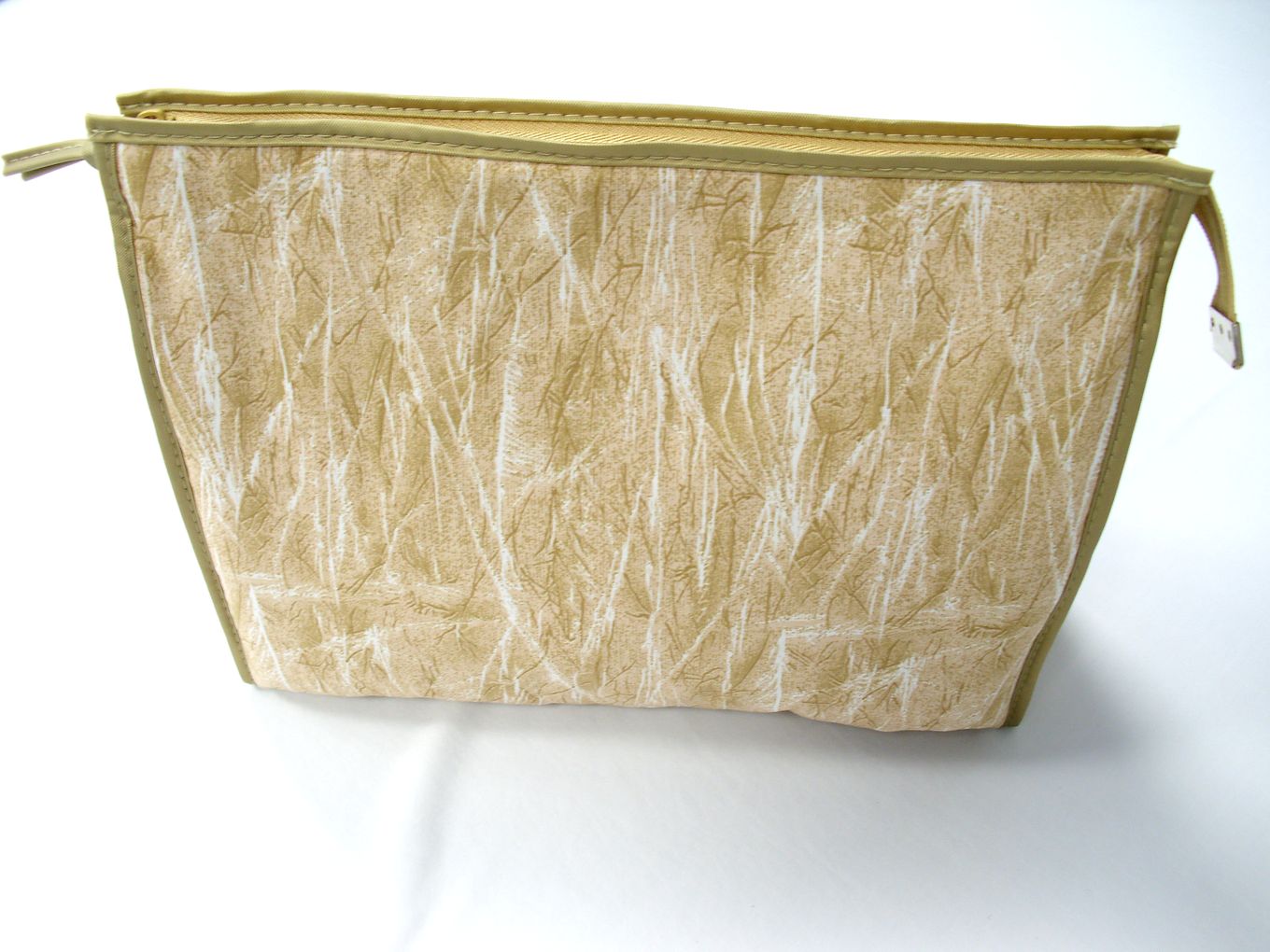 Zwischen dem Innenfutter und dem Außenstoff wurde zur Stabilisierung eine weich gepolsterte Vliessschicht eingearbeitet. Und die Reißverschlussöffnung mit verlängerter Zughilfe sorgt für einfaches Öffnen und Schließen des Kosmetikbeutels.